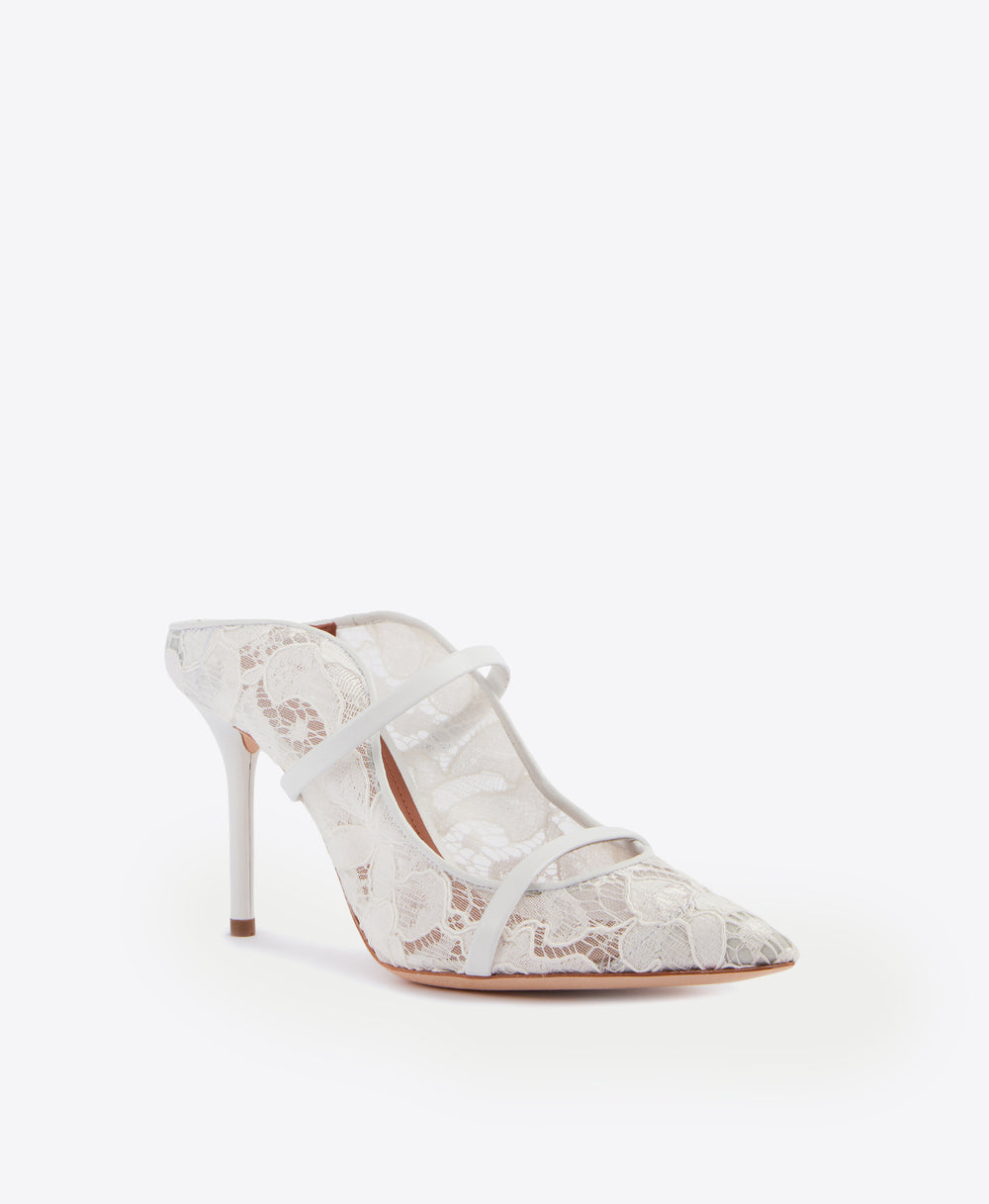Maureen 85mm White Lace Stiletto Mules | Malone Souliers