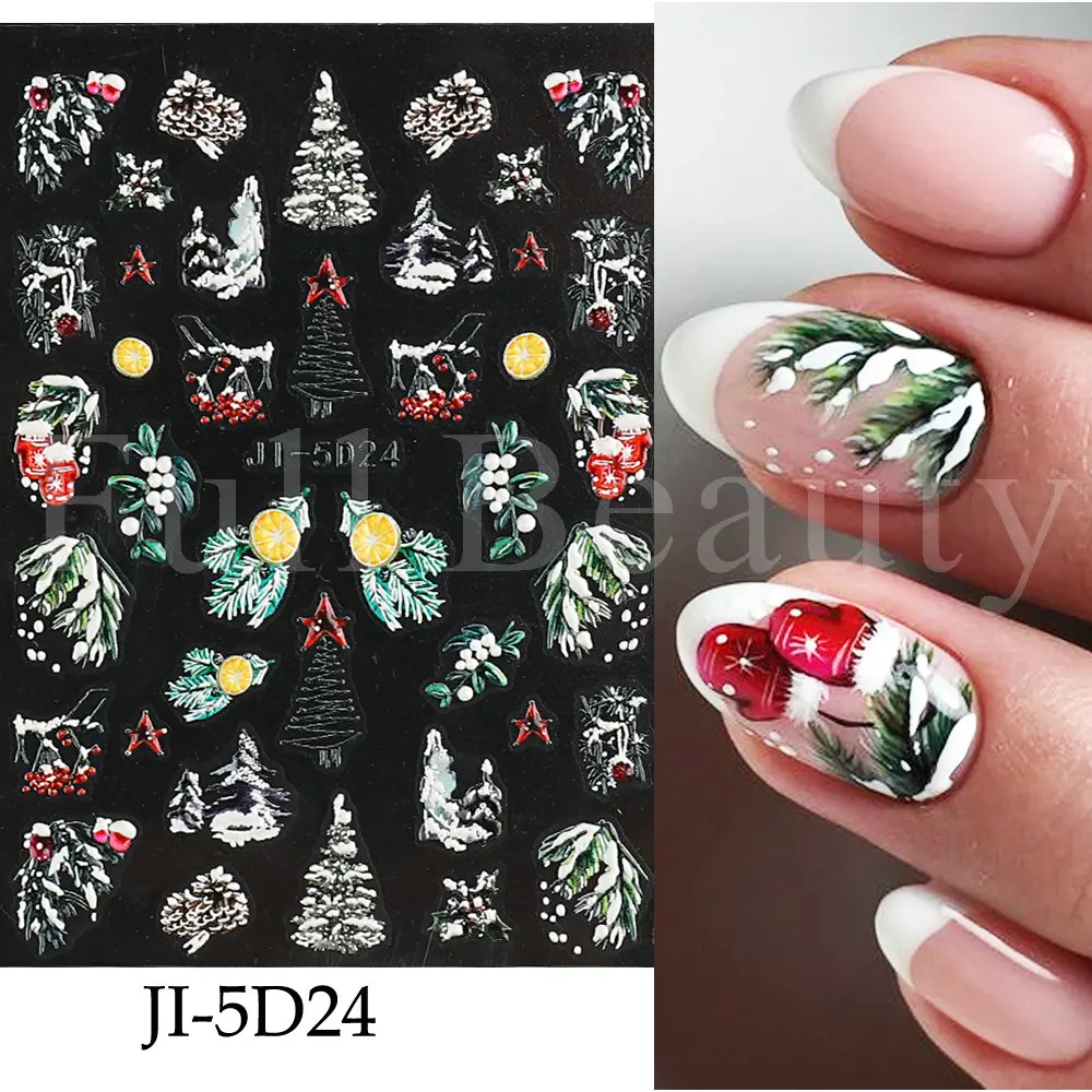 5D Embossed Christmas Nail Art Stickers Winter New Year Red Santa